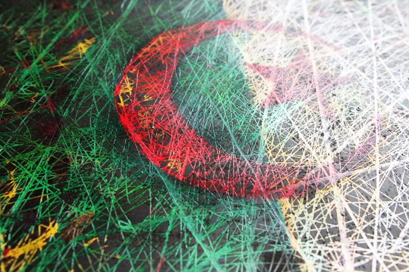 This is an original, 100% handmade, abstract, light textured flag painting on paper. This painting was created using gouache paints, coloured pencils and ink.